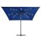 Parasol de jardin en porte-à-faux lumières LED et mât en acierCet élégant parasol suspendu avec lumières LED est parfait pour créer de l'ombre et vous protéger des rayons UV nocifs. Fabriquée en polyester anti-UV et anti-décoloration, la toile de parasol vous offre une protection optimale contre le soleil et est facile à nettoyer. Le parasol dispose de 24 LED à énergie solaire pour éclairer automatiquement votre espace de vie extérieure et créer une ambiance chaleureuse et romantique quand le soleil se couche. Il est également livré avec une base croisée robuste pour une stabilité accrue. Le design exclusif de ce parasol vous permet d'incliner et de tourner le parasol à 360 degrés pour bloquer le soleil. Le mât en acier résistant, ainsi que les 8 nervures durables, rendent le parasol très stable et durable. Notre parasol de jardin peut être ouvert et fermé facilement grâce au mécanisme à manivelle. L'article est facile à assembler. Veuillez noter que nous vous recommandons de traiter le tissu du parasol avec un spray imperméabilisant s'il est soumis à des fortes précipitations. Il est important que tout produit assemblé à l'aide d'une vis, quelle qu'elle soit, soit resserré deux semaines après l'assemblage et une fois tous les trois mois, afin d'assurer la stabilité du produit pendant toute sa durée de vie. Ne serrez pas complètement chaque vis avant que toutes les vis soient correctement fixées. Tenir les enfants à l'écart de la zone d'assemblage pendant le montage. Manipulez les pièces lourdes avec précaution. Assurez-vous que ce produit est entièrement assemblé comme illustré avant de l'utiliser. Ce produit ne doit être utilisé que sur un sol ferme et plat. Veillez à ce que le produit soit toujours placé sur un sol plat. Aucune responsabilité ne sera acceptée en cas de dommages ou de blessures causés par une utilisation incorrecte de ce produit. Tenir les mains à l'écart du mécanisme de pliage et des pièces mobiles afin d'éviter tout risque de blessure. N'utilisez ni n'ouvrez jamais ce parasol sans qu'une base appropriée ne soit en place. N'utilisez pas ce parasol pendant les périodes de vent fort et de pluie. Le non-respect de cette consigne peut entraîner des blessures et/ou des dommages. Fermez toujours le parasol et mettez la housse si le vent dépasse une « brise modérée », s'il y a des chutes de neige ou s'il pleut. Le produit contient de petites pièces qui peuvent présenter un risque pour les jeunes enfants. Gardez les petites pièces hors de portée des enfants. Ce produit n'est pas un jouet ! Veillez à ce que les enfants n'utilisent pas le parasol, l'auvent ou la base pour jouer ou grimper. pour jouer ou grimper. N'utilisez pas de feu ouvert (par exemple, barbecue ou grill) sous ou à côté de ce produit. Si la vitesse du vent dépasse 6 m/s ou en cas de fortes pluies, retirez soigneusement le produit, pliez-le, sécurisez-le et mettez-le dans un endroit sûr. Si le tissu devient accidentellement mouillé, séchez-le immédiatement pour éviter un vieillissement prématuré du produit. Vérifiez avant utilisation que votre gazebo, tente, parasol ou pavillon n'est pas endommagé (éléments métalliques pliés, tissu déchiré). En cas de dommages, n'utilisez pas le produit. Le non-respect de ces consignes peut entraîner des dommages.