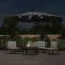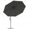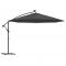 Parasol de jardin en porte-à-faux et lumières LED mât en métalCet élégant parasol suspendu avec lumières LED est parfait pour créer de l'ombre et vous protéger des rayons UV nocifs. Fabriquée en polyester anti-UV et anti-décoloration, la couverture de parasol vous offre une protection optimale contre le soleil et est facile à nettoyer. Il dispose de 24 LED à énergie solaire pour éclairer automatiquement votre espace de vie extérieure et créer une ambiance chaleureuse et romantique quand le soleil se couche. Il est également livré avec une base croisée robuste pour ajouter de la stabilité. Le design exclusif de ce parasol vous permet d'incliner le parasol pour bloquer le soleil qui se dirige vers l'horizon. Le poteau en métal résistant, ainsi que les 8 nervures durables, rendent le parasol très stable et durable. Notre parasol de jardin peut être ouvert et fermé facilement grâce au mécanisme à manivelle. L'article est facile à assembler. Veuillez noter que nous vous recommandons de traiter le tissu du parasol avec un spray imperméabilisant s'il est soumis à des fortes précipitations. Il est important que tout produit assemblé à l'aide d'une vis, quelle qu'elle soit, soit resserré deux semaines après l'assemblage et une fois tous les trois mois, afin d'assurer la stabilité du produit pendant toute sa durée de vie. Ne serrez pas complètement chaque vis avant que toutes les vis soient correctement fixées. Tenir les enfants à l'écart de la zone d'assemblage pendant le montage. Manipulez les pièces lourdes avec précaution. Assurez-vous que ce produit est entièrement assemblé comme illustré avant de l'utiliser. Ce produit ne doit être utilisé que sur un sol ferme et plat. Veillez à ce que le produit soit toujours placé sur un sol plat. Aucune responsabilité ne sera acceptée en cas de dommages ou de blessures causés par une utilisation incorrecte de ce produit. Tenir les mains à l'écart du mécanisme de pliage et des pièces mobiles afin d'éviter tout risque de blessure. N'utilisez ni n'ouvrez jamais ce parasol sans qu'une base appropriée ne soit en place. N'utilisez pas ce parasol pendant les périodes de vent fort et de pluie. Le non-respect de cette consigne peut entraîner des blessures et/ou des dommages. Fermez toujours le parasol et mettez la housse si le vent dépasse une « brise modérée », s'il y a des chutes de neige ou s'il pleut. Le produit contient de petites pièces qui peuvent présenter un risque pour les jeunes enfants. Gardez les petites pièces hors de portée des enfants. Ce produit n'est pas un jouet ! Veillez à ce que les enfants n'utilisent pas le parasol, l'auvent ou la base pour jouer ou grimper. pour jouer ou grimper. N'utilisez pas de feu ouvert (par exemple, barbecue ou grill) sous ou à côté de ce produit. Si la vitesse du vent dépasse 6 m/s ou en cas de fortes pluies, retirez soigneusement le produit, pliez-le, sécurisez-le et mettez-le dans un endroit sûr. Si le tissu devient accidentellement mouillé, séchez-le immédiatement pour éviter un vieillissement prématuré du produit. Vérifiez avant utilisation que votre gazebo, tente, parasol ou pavillon n'est pas endommagé (éléments métalliques pliés, tissu déchiré). En cas de dommages, n'utilisez pas le produit. Le non-respect de ces consignes peut entraîner des dommages.