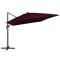 Parasol de jardin en porte-à-faux lumières LED rouge bordeauxCet élégant parasol déporté avec lumière LED est un choix parfait pour créer de l'ombre et vous protéger des rayons UV nocifs du soleil. Lorsque le soleil se couche, les LED atmosphériques à énergie solaire éclairent automatiquement votre espace de vie extérieur. Fabriquée en polyester anti-UV et anti-décoloration, la toile de parasol vous offre une protection optimale contre le soleil et est facile à nettoyer. Il dispose de 24 LED à énergie solaire pour illuminer automatiquement votre espace de vie extérieur et créer une ambiance chaleureuse et romantique lorsque le soleil se couche. Il est livré avec une base transversale robuste pour ajouter de la stabilité. Ce parasol de jardin peut être facilement ouvert et fermé en tournant simplement le bouton sur le mât. L'angle du toit peut être ajusté en poussant et en tirant la poignée de haut en bas. Le mât central peut également être tourné à 360 degrés au moyen de la pédale. Le mât en aluminium enduit de poudre, ainsi que les 8 nervures durables, rendent ce parasol très stable et durable. Veuillez noter que nous vous recommandons de traiter le tissu du parasol avec un spray imperméabilisant s'il est soumis à des fortes précipitations. Remarque : ce produit est doté d'un connecteur USB, mais la source d'alimentation certifiée de USB 5V n'est pas incluse. Il est important que tout produit assemblé à l'aide d'une vis, quelle qu'elle soit, soit resserré deux semaines après l'assemblage et une fois tous les trois mois, afin d'assurer la stabilité du produit pendant toute sa durée de vie. Ne serrez pas complètement chaque vis avant que toutes les vis soient correctement fixées. Tenir les enfants à l'écart de la zone d'assemblage pendant le montage. Manipulez les pièces lourdes avec précaution. Assurez-vous que ce produit est entièrement assemblé comme illustré avant de l'utiliser. Ce produit ne doit être utilisé que sur un sol ferme et plat. Veillez à ce que le produit soit toujours placé sur un sol plat. Aucune responsabilité ne sera acceptée en cas de dommages ou de blessures causés par une utilisation incorrecte de ce produit. Tenir les mains à l'écart du mécanisme de pliage et des pièces mobiles afin d'éviter tout risque de blessure. N'utilisez ni n'ouvrez jamais ce parasol sans qu'une base appropriée ne soit en place. N'utilisez pas ce parasol pendant les périodes de vent fort et de pluie. Le non-respect de cette consigne peut entraîner des blessures et/ou des dommages. Fermez toujours le parasol et mettez la housse si le vent dépasse une « brise modérée », s'il y a des chutes de neige ou s'il pleut. Le produit contient de petites pièces qui peuvent présenter un risque pour les jeunes enfants. Gardez les petites pièces hors de portée des enfants. Ce produit n'est pas un jouet ! Veillez à ce que les enfants n'utilisent pas le parasol, l'auvent ou la base pour jouer ou grimper. pour jouer ou grimper. N'utilisez pas de feu ouvert (par exemple, barbecue ou grill) sous ou à côté de ce produit. Si la vitesse du vent dépasse 6 m/s ou en cas de fortes pluies, retirez soigneusement le produit, pliez-le, sécurisez-le et mettez-le dans un endroit sûr. Si le tissu devient accidentellement mouillé, séchez-le immédiatement pour éviter un vieillissement prématuré du produit. Vérifiez avant utilisation que votre gazebo, tente, parasol ou pavillon n'est pas endommagé (éléments métalliques pliés, tissu déchiré). En cas de dommages, n'utilisez pas le produit. Le non-respect de ces consignes peut entraîner des dommages.