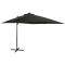 Parasol de jardin en porte-à-faux et mât et lumières LED noirCet élégant parasol avec lumières LED est un excellent choix pour créer un peu d'ombre et de protection contre les rayons UV nocifs du soleil. Lorsque le soleil se couche, les LED illumineront votre espace de vie extérieur. La housse de parasol, en polyester anti-UV et anti-décoloration, vous offre une protection optimale contre le soleil et est facile à nettoyer. Le parasol est doté d'une base transversale solide pour plus de stabilité. La conception exclusive du parasol de jardin vous permet de l'incliner et de le faire pivoter à 360 degrés pour bloquer le soleil de n'importe quel angle. Le solide mât en aluminium, ainsi que les 8 nervures durables, rendent le parasol très stable. Ce parasol de jardin peut être facilement ouvert et fermé grâce au mécanisme à manivelle. De plus, ce parasol de patio dispose de 24 LED pour illuminer votre espace de vie extérieur et créer une ambiance confortable et romantique lorsque le soleil se couche. Veuillez noter que nous vous recommandons de traiter le tissu du parasol avec un spray imperméabilisant s'il est soumis à des fortes précipitations. Il est important que tout produit assemblé à l'aide d'une vis, quelle qu'elle soit, soit resserré deux semaines après l'assemblage et une fois tous les trois mois, afin d'assurer la stabilité du produit pendant toute sa durée de vie. Ne serrez pas complètement chaque vis avant que toutes les vis soient correctement fixées. Tenir les enfants à l'écart de la zone d'assemblage pendant le montage. Manipulez les pièces lourdes avec précaution. Assurez-vous que ce produit est entièrement assemblé comme illustré avant de l'utiliser. Ce produit ne doit être utilisé que sur un sol ferme et plat. Veillez à ce que le produit soit toujours placé sur un sol plat. Aucune responsabilité ne sera acceptée en cas de dommages ou de blessures causés par une utilisation incorrecte de ce produit. Tenir les mains à l'écart du mécanisme de pliage et des pièces mobiles afin d'éviter tout risque de blessure. N'utilisez ni n'ouvrez jamais ce parasol sans qu'une base appropriée ne soit en place. N'utilisez pas ce parasol pendant les périodes de vent fort et de pluie. Le non-respect de cette consigne peut entraîner des blessures et/ou des dommages. Fermez toujours le parasol et mettez la housse si le vent dépasse une « brise modérée », s'il y a des chutes de neige ou s'il pleut. Le produit contient de petites pièces qui peuvent présenter un risque pour les jeunes enfants. Gardez les petites pièces hors de portée des enfants. Ce produit n'est pas un jouet ! Veillez à ce que les enfants n'utilisent pas le parasol, l'auvent ou la base pour jouer ou grimper. pour jouer ou grimper. N'utilisez pas de feu ouvert (par exemple, barbecue ou grill) sous ou à côté de ce produit. Si la vitesse du vent dépasse 6 m/s ou en cas de fortes pluies, retirez soigneusement le produit, pliez-le, sécurisez-le et mettez-le dans un endroit sûr. Si le tissu devient accidentellement mouillé, séchez-le immédiatement pour éviter un vieillissement prématuré du produit. Vérifiez avant utilisation que votre gazebo, tente, parasol ou pavillon n'est pas endommagé (éléments métalliques pliés, tissu déchiré). En cas de dommages, n'utilisez pas le produit. Le non-respect de ces consignes peut entraîner des dommages.