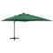 Parasol de jardin en porte-à-faux et mât et lumières LED vertCet élégant parasol avec lumières LED est un excellent choix pour créer un peu d'ombre et de protection contre les rayons UV nocifs du soleil. Lorsque le soleil se couche, les LED illumineront votre espace de vie extérieur. La housse de parasol, en polyester anti-UV et anti-décoloration, vous offre une protection optimale contre le soleil et est facile à nettoyer. Le parasol est doté d'une base transversale solide pour plus de stabilité. La conception exclusive du parasol de jardin vous permet de l'incliner et de le faire pivoter à 360 degrés pour bloquer le soleil de n'importe quel angle. Le solide mât en aluminium, ainsi que les 8 nervures durables, rendent le parasol très stable. Ce parasol de jardin peut être facilement ouvert et fermé grâce au mécanisme à manivelle. De plus, ce parasol de patio dispose de 24 LED pour illuminer votre espace de vie extérieur et créer une ambiance confortable et romantique lorsque le soleil se couche. Veuillez noter que nous vous recommandons de traiter le tissu du parasol avec un spray imperméabilisant s'il est soumis à des fortes précipitations. Il est important que tout produit assemblé à l'aide d'une vis, quelle qu'elle soit, soit resserré deux semaines après l'assemblage et une fois tous les trois mois, afin d'assurer la stabilité du produit pendant toute sa durée de vie. Ne serrez pas complètement chaque vis avant que toutes les vis soient correctement fixées. Tenir les enfants à l'écart de la zone d'assemblage pendant le montage. Manipulez les pièces lourdes avec précaution. Assurez-vous que ce produit est entièrement assemblé comme illustré avant de l'utiliser. Ce produit ne doit être utilisé que sur un sol ferme et plat. Veillez à ce que le produit soit toujours placé sur un sol plat. Aucune responsabilité ne sera acceptée en cas de dommages ou de blessures causés par une utilisation incorrecte de ce produit. Tenir les mains à l'écart du mécanisme de pliage et des pièces mobiles afin d'éviter tout risque de blessure. N'utilisez ni n'ouvrez jamais ce parasol sans qu'une base appropriée ne soit en place. N'utilisez pas ce parasol pendant les périodes de vent fort et de pluie. Le non-respect de cette consigne peut entraîner des blessures et/ou des dommages. Fermez toujours le parasol et mettez la housse si le vent dépasse une « brise modérée », s'il y a des chutes de neige ou s'il pleut. Le produit contient de petites pièces qui peuvent présenter un risque pour les jeunes enfants. Gardez les petites pièces hors de portée des enfants. Ce produit n'est pas un jouet ! Veillez à ce que les enfants n'utilisent pas le parasol, l'auvent ou la base pour jouer ou grimper. pour jouer ou grimper. N'utilisez pas de feu ouvert (par exemple, barbecue ou grill) sous ou à côté de ce produit. Si la vitesse du vent dépasse 6 m/s ou en cas de fortes pluies, retirez soigneusement le produit, pliez-le, sécurisez-le et mettez-le dans un endroit sûr. Si le tissu devient accidentellement mouillé, séchez-le immédiatement pour éviter un vieillissement prématuré du produit. Vérifiez avant utilisation que votre gazebo, tente, parasol ou pavillon n'est pas endommagé (éléments métalliques pliés, tissu déchiré). En cas de dommages, n'utilisez pas le produit. Le non-respect de ces consignes peut entraîner des dommages.