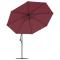 Parasol de jardin en porte-à-faux et poteau en aluminiumCet élégant parasol suspendu est parfait pour créer de l'ombre et vous protéger des rayons UV nocifs. Fabriquée en polyester anti-UV et anti-décoloration, la couverture de parasol vous offre une protection optimale contre le soleil et est facile à nettoyer. Il comporte une base croisée robuste pour ajouter de la stabilité. Le design exclusif de ce parasol vous permet d'incliner le parasol pour bloquer le soleil qui se dirige vers l'horizon. Le mât en métal résistant, ainsi que les 8 nervures durables, rendent le parasol très stable et durable. Notre parasol de jardin peut être ouvert et fermé facilement grâce au mécanisme à manivelle. L'article est facile à assembler. Veuillez noter que nous vous recommandons de traiter le tissu du parasol avec un spray imperméabilisant s'il est soumis à des fortes précipitations.