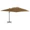 Parasol de jardin en porte-à-faux et poteau en aluminium taupeCet élégant parasol suspendu est parfait pour créer de l'ombre et vous protéger des rayons UV nocifs. Fabriquée en polyester anti-UV et anti-décoloration, la toile de parasol vous offre une protection optimale contre le soleil et est facile à nettoyer. Il dispose d'une base croisée robuste pour ajouter de la stabilité. Notre parasol de jardin peut être facilement ouvert et fermé en tournant simplement le bouton sur le mât. L'angle du toit peut être ajusté en poussant et en tirant la poignée de haut en bas. Le mât central peut également être tourné à 360 degrés au moyen de la pédale. Le mât en aluminium enduit de poudre, ainsi que les 8 nervures durables, rendent ce parasol très stable et durable. L'article est facile à assembler. Veuillez noter que nous vous recommandons de traiter le tissu du parasol avec un spray imperméabilisant s'il est soumis à des fortes précipitations.