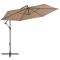 Parasol de jardin en porte-à-faux et poteau en aluminium taupeCet élégant parasol suspendu est parfait pour créer de l'ombre et vous protéger des rayons UV nocifs. Fabriquée en polyester anti-UV et anti-décoloration, la couverture de parasol vous offre une protection optimale contre le soleil et est facile à nettoyer. Il comporte une base croisée robuste pour ajouter de la stabilité. Le design exclusif de ce parasol vous permet d'incliner le parasol pour bloquer le soleil qui se dirige vers l'horizon. Le poteau en métal résistant, ainsi que les 6 nervures durables, rendent le parasol très stable et durable. Notre parasol de jardin peut être ouvert et fermé facilement grâce au mécanisme à manivelle. L'article est facile à assembler. Veuillez noter que nous vous recommandons de traiter le tissu du parasol avec un spray imperméabilisant s'il est soumis à des fortes précipitations.