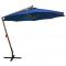 Parasol de jardin suspendu avec mât bleu azuré bois de sapinCe parasol de jardin suspendu en bois est un choix parfait pour créer de l'ombre et une protection contre les rayons UV nocifs du soleil. Il offre un espace confortable dans votre patio, terrasse ou jardin, et autre espace de vie extérieur. Fabriquée en polyester résistant aux UV et à la décoloration, la couverture de parasol vous offre une protection optimale contre le soleil. Le mât en bois de sapin massif, ainsi que 8 nervures de bambou robustes et une base transversale, assurent une grande stabilité. La toile est suspendue librement au mât, de sorte que ce dernier n'obstrue pas l'espace situé sous le parasol.