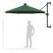 La hauteur de ce parasol mural dépend de la hauteur à laquelle il est fixé au mur.