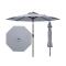 Caractéristiques techniques : Couleur : Gris Matériaux : Métal, Polyester Dimensions hors tout : 270 x 270 x 240 cm Hauteur du Bord du Parasol : 190 cm Poids Net : 5,5 kg Système d'inclinaison à bouton-poussoir Manivelle pour ouverture et fermeture faciles Toit ventilé pour plus de fraîcheur 8 baleines solides assurant une structure fiable Goupille de sécurité empêchant la fermeture soudaine Sangle de fixation pour un rangement compact