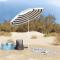 Parasol de plage avec poteau en métal bleu et blanc 161 x 193 cm en polyester.