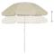 Parasol de plage jaune sable 300 cmLe parasol de plage est fait de polyester anti-UV et anti-décoloration, ce qui est agréable pour bloquer les rayons UV nocifs du soleil. La robuste baleine du parasol peut soutenir suffisamment la toile. Ce parasol peut être monté sur votre support existant ou au milieu des tables si des trous sont disponibles. Le parasol peut être réglé dans n'importe quelle direction avec fonction d'inclinaison, qui vous offre une protection optimale contre le soleil. L'orifice sur le dessus est conçu pour favoriser le flux d'air, permettant au parasol de banc de lutter contre les vents forts pour rester plus stable. Le design floral est unique et élégant et il sera un point de mire sur la plage.