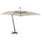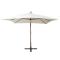 Parasol suspendu avec poteau en bois 300x300 cm blancCet élégant parasol de jardin suspendu en bois de haute qualité est un choix parfait pour créer de l'ombre et vous protéger des rayons UV nocifs du soleil tout en vous relaxant en famille sur le patio, la terrasse ou dans le jardin. Il fera également un supplément attrayant à votre espace de vie en plein air. Fabriquée en polyester résistant aux UV et à la décoloration, la couverture de parasol vous offre une protection optimale contre le soleil. Le poteau en bois solide, avec 8 nervures de bambou vigoureuses et une base croisée, assure de la grande stabilité et de la durabilité. Le parasol pend librement du poteau, ainsi le poteau n'obstruera pas l'espace sous le parasol. Le parasol peut être facilement ouvert et fermé grâce au mécanisme à manivelle.