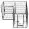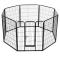 Parc pour chiens 8 panneaux Acier 80 x 100 cm Noir Notre parc polyvalent est idéal pour que vos chiens jouent, s'entraînent, fassent des exercices ou tout simplement pour les protéger. Ce sera le paradis de jeu parfait pour vos amis à fourrure ! Ce chenil de chiens peut être facilement mis en place ou démonté. Il se compose de 8 panneaux robustes et chaque panneau peut être facilement attaché au suivant, ce qui vous permet de configurer le parc en différentes formes. L'enclos pour chiens comporte une porte à charnière avec loquets de sécurité pour un accès facile. Ce parc pour chiens, durable et résistant aux intempéries, est en acier antirouille enduit de poudre, ce qui le rend idéal pour une utilisation à l'extérieur et à l'intérieur. Les piquets de sol inclus aident à sécuriser le parc d'extérieur pour plus de stabilité et de sécurité.