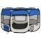 Parc pliable pour chien avec sac de transport Bleu 110x110x58cmCe parc pour chiens pliable est idéal pour le dressage des chiens, comme zone de couchage ou comme aire de jeu pour courir. Ce parc, avec les dimensions de 110x110x58 cm, est parfait pour l'utilisation à la maison ou en voyage. Il comprend un sac de transport pour un rangement pratique. Il est léger mais pourtant très robuste, grâce à la structure en acier solide. Le toit et la porte en filet peuvent être ouverts ou fermés rapidement avec la fermeture éclair. Les filets latéraux assurent une bonne circulation de l'air et une grande visibilité. De plus, les poches latérales sont adaptées pour garder les petits articles, comme les jouets. Cette cage peut être facilement stockée avec sa conception pliable lorsqu'elle n'est pas utilisée. Destiné à l'usage des animaux domestiques uniquement.