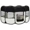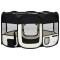 Parc pliable pour chien avec sac de transport Noir 145x145x61cmCe parc pour chiens pliable est idéal pour le dressage des chiens, comme zone de couchage ou comme aire de jeu pour courir. Ce parc, avec les dimensions de 145x145x61 cm, est parfait pour l'utilisation à la maison ou en voyage. Il comprend un sac de transport pour un rangement pratique. Il est léger mais pourtant très robuste, grâce à la structure en acier solide. Le toit et la porte en filet peuvent être ouverts ou fermés rapidement avec la fermeture éclair. Les filets latéraux assurent une bonne circulation de l'air et une grande visibilité. De plus, les poches latérales sont adaptées pour garder les petits articles, comme les jouets. Cette cage peut être facilement stockée avec sa conception pliable lorsqu'elle n'est pas utilisée. Destiné à l'usage des animaux domestiques uniquement.
