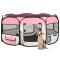 Parc pliable pour chien avec sac de transport Rose 145x145x61cmCe parc pour chiens pliable est idéal pour le dressage des chiens, comme zone de couchage ou comme aire de jeu pour courir. Ce parc, avec les dimensions de 145x145x61 cm, est parfait pour l'utilisation à la maison ou en voyage. Il comprend un sac de transport pour un rangement pratique. Il est léger mais pourtant très robuste, grâce à la structure en acier solide. Le toit et la porte en filet peuvent être ouverts ou fermés rapidement avec la fermeture éclair. Les filets latéraux assurent une bonne circulation de l'air et une grande visibilité. De plus, les poches latérales sont adaptées pour garder les petits articles, comme les jouets. Cette cage peut être facilement stockée avec sa conception pliable lorsqu'elle n'est pas utilisée. Destiné à l'usage des animaux domestiques uniquement.