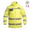 Parka Hardshell SÉCU-ONE haute visibilité jaune, imperméable, respirante et isolante jusqu'à -10°C. Conforme au décret du 18 juillet 2023 et à la norme EN ISO 20471 Classe 2. Idéale pour les missions en environnement exposé.