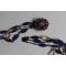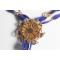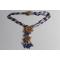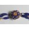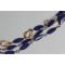 Collier à pendentif bleu et or avec clips d'oreilles assortis perles de verre bleu cobalt et métal doré estampillé GM, voir photos vers 1980 diamètre clips d'oreilles : 4,2 cm largeur pendentif : 5,2 cm circonférence collier : 56 cm bon état