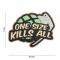 Le design élégant du Patch 3D PVC se démarque par ses couleurs gris loup et vert, rendant ce produit attrayant non seulement pour son utilité mais aussi pour son aspect esthétique. Avec un slogan puissant "One size kills all", il apporte une touche d'humour et de caractère à votre équipement d'airsoft.