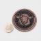 Diamètre 6,5 cm · cuir PU brun/noir · fabrication artisanale.