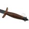Paul Chen en propose ici une très belle réplique, fidèle à l'originale, avec son manche cuir, sa lame noire et son étui en cuir marron.