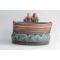 Petit vase en terre cuite représentant un couple de pêcheur à coté de leur bateau Le Havre Fabrique l'Isle Adam, signé et numéroté n°1993 bon état, voir photos