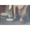 Peinture à l'huile sur toile, Paysanne à la vaisselle signé en bas à droite en rouge : E. Lazare ? d'époque XIXe siècle bon état, petits manques de peinture, voir photos