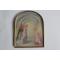 Peinture miniature semi-circulaire d'apès Fra Angelico, l'Annonciation de la Vierge Marie Représentant la célèbre fresque du dortoir du couvent San Marco à Florence, peinte vers 1440 Signée O. Albine, voir photos bon état, voir photos