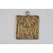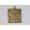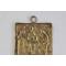 Ancienne petite icône orthodoxe portative, pendentif, en bronze, représentant la Déisis : au centre le Christ Pantocrator, à gauche la Vierge Marie, à droite Saint Jean Baptiste
