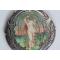 Superbe médaillon en argent ciselé et émaillé d'une femme nue avec une chaîne sautoir en argent (144 cm de long) poinçon 800 d'époque 1900, fin XIXe siècle bon état, légères rayures sur l'émail