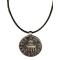 En métal aspect bronze vieilli et verni, livré avec un lacet noir.