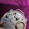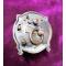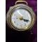Pendulette réveil de voyage en métal, cadran émaillé blanc avec chiffres arabes peints.