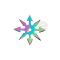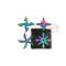 Set de 4 étoiles à lancer (shurikens) en acier inox, de petit format, avec finition rainbow, variant selon la luminosité.