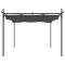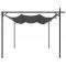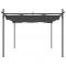 Pergola avec toit rétractable anthracite 295x292x230 cmCette pergola offre un excellent abri pour les réunions de famille, les fêtes et autres activités de plein air. Toile résistante aux UV : le toit de la pergola de jardin, fabriqué en tissu polyester avec un revêtement de PA, vous protège de l'éblouissement et des rayons UV nocifs de la lumière directe du soleil.Structure stable et robuste : le cadre en aluminium et en acier enduit de poudre rend la pergola d'extérieur stable et solide.Toit rétractable : la pergola en métal est dotée d'un toit rétractable, ce qui vous permet de l'ajuster selon vos besoins. Larges applications : ce pavillon sert à diverses fins, notamment pour les repas en plein air, les divertissements, la relaxation et la méditation. Bon à savoir :Ce produit ne convient pas pour une utilisation pendant de mauvaises conditions météorologiques telles que vent fort, fortes pluies, neige, tempête, etc.