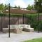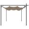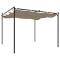 Pergola avec toit rétractable taupe 295x292x230 cmCette pergola offre un excellent abri pour les réunions de famille, les fêtes et autres activités de plein air. Toile résistante aux UV : le toit de la pergola de jardin, fabriqué en tissu polyester avec un revêtement de PA, vous protège de l'éblouissement et des rayons UV nocifs de la lumière directe du soleil. Structure stable et robuste : le cadre en aluminium et en acier enduit de poudre rend la pergola d'extérieur stable et solide. Toit rétractable : la pergola en métal est dotée d'un toit rétractable, ce qui vous permet de l'ajuster selon vos besoins. Larges applications : ce pavillon sert à diverses fins, notamment pour les repas en plein air, les divertissements, la relaxation et la méditation. Bon à savoir : Ce produit ne convient pas pour une utilisation pendant de mauvaises conditions météorologiques telles que vent fort, fortes pluies, neige, tempête, etc.