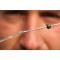 La perle est traversée par un trou conique. Si elle est utilisée avec le trou le plus large tourné vers la canne, elle passera mieux sur un noeud de raccordement de tête de ligne.