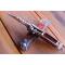 Couteau automatique à pression, design agressif Pliant de Poche avec Sa lame en acier inoxydable tant aux lignes tendues est à ouverture facile mesure 7 cm elle est en acier inoxydable et possède une sécurité, manche de 9 cm en bois, et poids 80 g. Sécurité anti-ouverture & anti fermeture. Ouverture très rapide à l'aide d'un bouton poussoir. Lame aiguisée et crantée en acier inoxydable de 7 cm. Trou pour lanière également sur le manche.