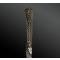 Le fourreau est en bois recouvert d’argent travaillé en repoussé. Un anneau de suspension est accompagné d’une chaînette.