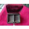 Boîte en ferraille de marque Esselte avec fermeture à clé de couleur rouge foncée avec un petit plateau, le côté gauche du plateau est fissuré mais ne gênant en rien pour poser des petits objets, dimensions, longueur : 16 cm, largeur : 12 cm, hauteur : 7,5 cm et profondeur : 7,5 cm, , pas de prix de réserve.