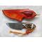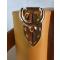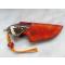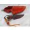 L 11cms. larg 2,5cms. Ep 3mm. Longueur émouture 6cms. Lacet paracorde orange/jaune avec perle transparente rouge pailletée.