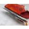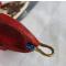 Etui croupon de cuir bouilli, teinté à la main (teinture Française), riveté laiton, avec insert moulé en cuir rouge, bélière laiton avec rondelle alu anodisé bleu.