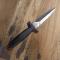 Belle piece ! Beau fourreau en cuir ! SAUF QUE : l'un et l'autre ne sont pas adapté ! Manche en bois qui n'est pas bien serti ! Impossible de fermer le sécurité en cuir car l'attache est trop petite ! Obligation de ma part d'acheter un autre fourreau en cuir ( 39 € ) ! BREF qualité Herbertz en baisse ! Extrêmement déçu par le produit !