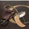 Très beau et petit couteau de type piémontais / curnicciolu dans son étui cuir tour de cou fabriqué.