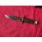 Petit poignard ancien avec son étui en cuir, un petit jeu au niveau de la garde, le bout de la pointe qui est un chouïa écrasé, lame inox, autrement état correct et la pointe du fourreau manque de couleur et Rapée , les dimensions sont les suivantes, longueur de la lame: 10,9 cm, longueur totale : 20,5 cm et longueur avec fourreau : 22cm, pas de prix de réserve