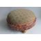 Petit repose-pieds circulaire, en bois peint façon écaille, recouvert d'un tissu tapissier à motif floral, bordé d'un galon vers 1900 bon état, voir photos