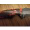 Utilitaire en acier carbone avec un manche et étui sur les tons noir et rouge.