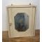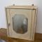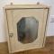 Jolie petite armoire métallique à suspendre en métal, avec étagères et petite porte avec miroir.