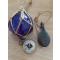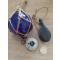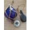Petite déco marine ancienne, poulie, boussole et flotteur en verre.