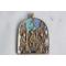 Petite icône orthodoxe de voyage en bronze émaillé de forme ogivale