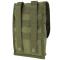 La pochette est attachée au gilet par deux sangles verticales, compatibles avec la norme MOLLE / PALS.