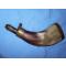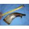 Petite poire à poudre en corne, mécanisme cassé, le ressort à l'air fatigué, impossible d'actionner la détente