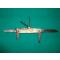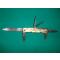 Plaquettes du manche fabriquées dans une sorte de corne nacrée dont une et cassée au niveau de l'anneau d'attache.